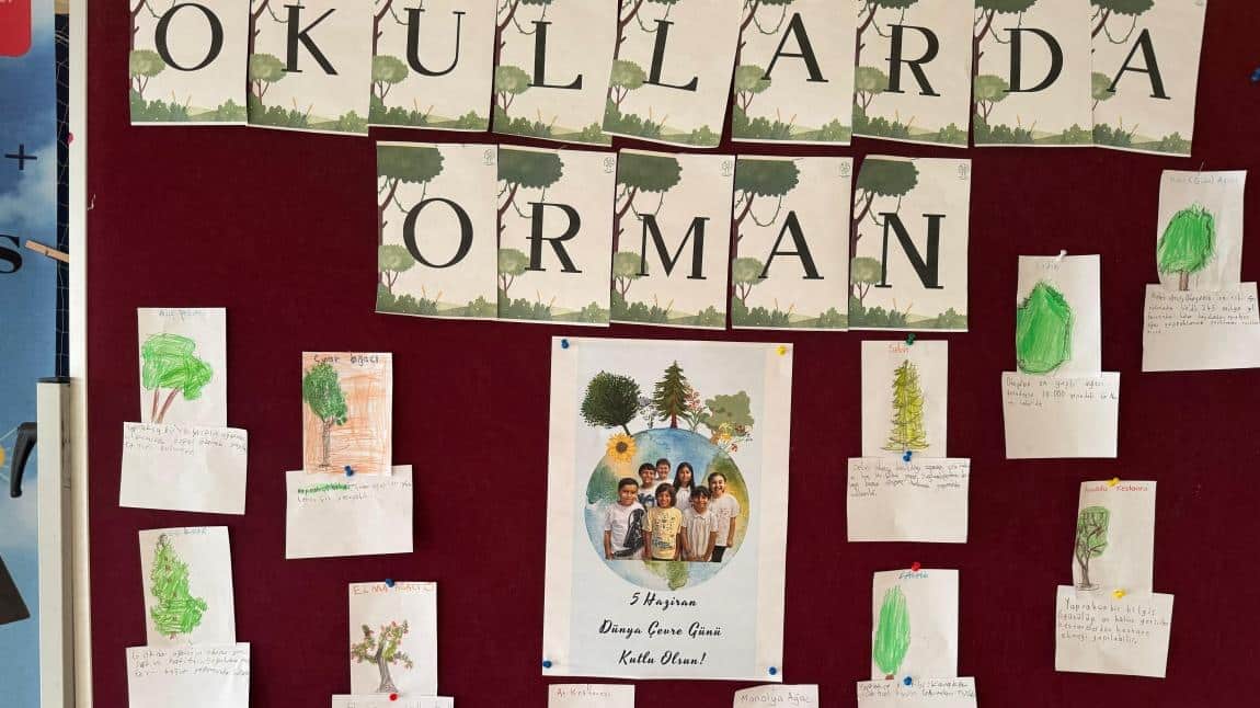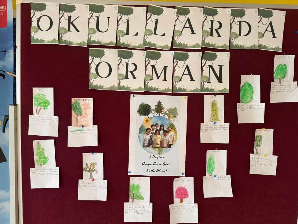 5 Haziran Dünya Çevre Günü kapsamında öğrencilerimiz ağaç türlerini araştırarak resimlerini yaptılar, ağaçlar hakkında önemli bilgiler topladılar ve panomuzda sergilediler.